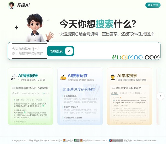 开搜AI搜索-查资料/找知识/做研究,免费无广告,加速知识探索