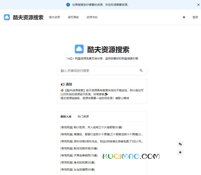 酷夫搜索-网盘资源搜索神器,支持百度网盘,阿里云盘,夸克网盘搜索