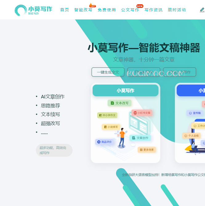 本站提供的小莫写作官网链接地址,源自互联网,在收录时,该网页上的内容,都属于合规合法,因为网址导航的特殊性,收录的网站域名会有过期、删除、重新注册等情况,酷奇猫网不声明也不保证该链接的正确性和可靠性,请仔细考虑清楚后,再进行访问,如有风险自行承担。