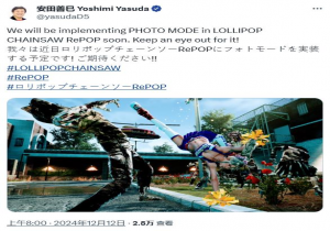 12月12日,Dragami Games的首席执行官安田善公布了一项新计划:《电锯甜心RePOP》将新增拍照功能,具体细节将在不久后揭晓。拍照模式通常允许玩家捕捉游戏中的精彩瞬间,如主角